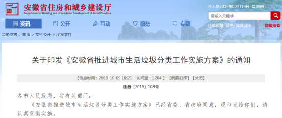 银川市:下发《关于加强物业小区设施管理推进垃圾分类工作的通知》