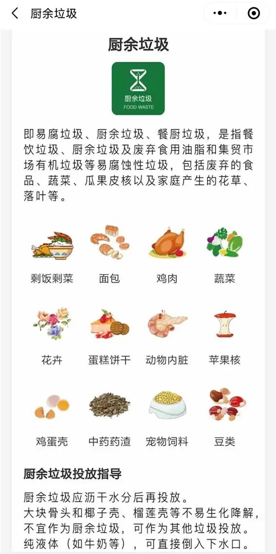 北京将生活垃圾分为厨余垃圾、可回收物、有害垃圾、其他垃圾四大类。厨余垃圾,是指家庭中产生的菜帮菜叶、瓜果皮核、剩菜剩饭、废弃食物等易腐性垃圾;从事餐饮经营活动的企业和机关、部队、学校、企业事业等单位集体食堂在食品加工、饮食服务、单位供餐等活动中产生的食物残渣、食品加工废料和废弃食用油脂;以及农贸市场、农产品批发市场产生的蔬菜瓜果垃圾、腐肉、肉碎骨、水产品、畜禽内脏等。其中,废弃食用油脂是指不可再食用的动植物油脂和油水混合物。